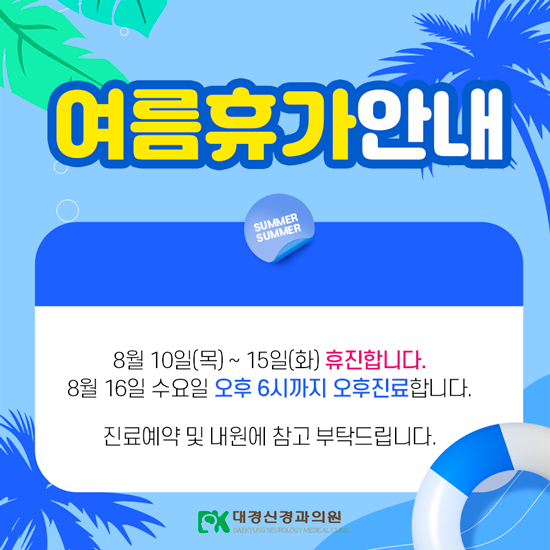 8월 10일 목요일 ~ 8월 15일 화요일은 휴진입니다.