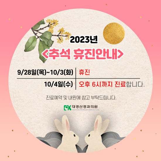 9월 28일 목요일부터 10월 3일 화요일까지는 휴진이며
