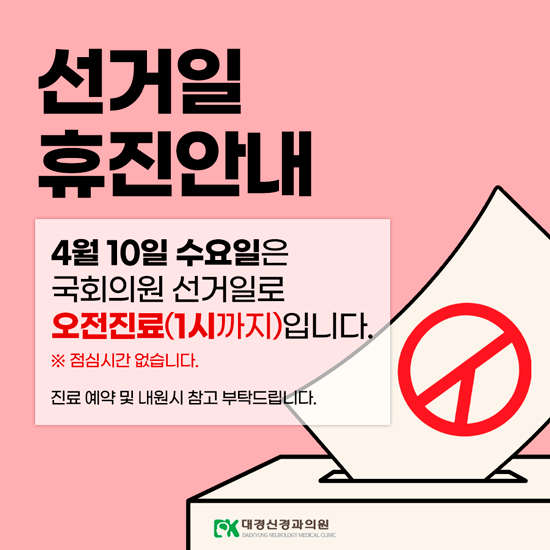 4월 10일은 국회의원 선거일로 오후 1시까지 오전진료합니다.