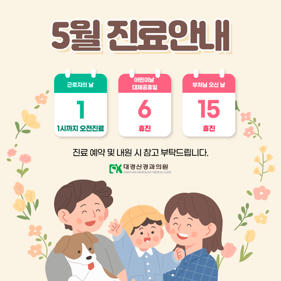 5월 1일 수요일은 오후 1시까지 오전진료이며,