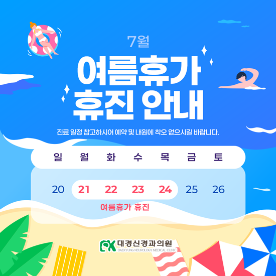 7월 21일(월) ~ 7월 24(목)는 여름 휴가 휴진입니다.