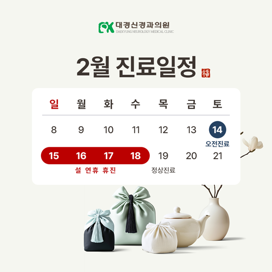 2월 15일(일) ~ 2월 18일(수)은 설 연휴 휴진입니다.
